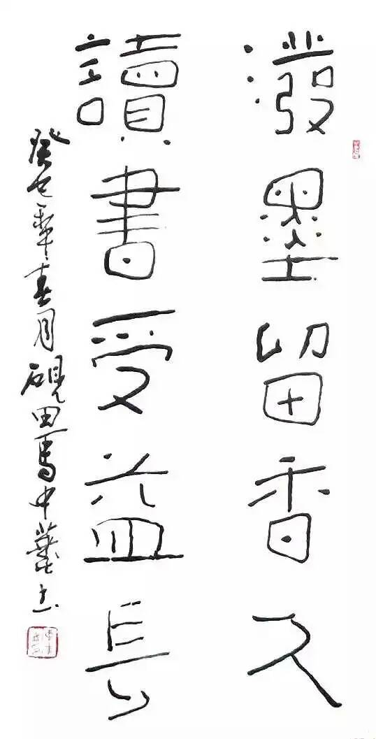 中华修养全面,他深厚的文学天赋和艺术素养,是经过几十年坚持不懈的参悟历练积淀而来的。酷爱书法的中华同任何有成就的书法家一样,几十年来做过很多功课,故使笔下的作品碑帖兼融,浑厚拙朴。有人称其篆书方整峻秀,古拙华滋;隶书活泼跃动,笔飞墨舞;楷书根基于欧,融碑化帖;行书和行草书畅达婉约,见笔见性,各种书体往往又都溶于一炉。很多作品都气韵生动,笔画舒展,铁画银钩,洒洒落落,翰墨焕彩猶如春风袭人。我以为说的并不过誉。书法讲究精气神,一件书法尤其是行楷、行草书作品如果缺少精神、气脉、神韵,很难有什么艺术感染力可言,而中华的书法恰恰注重的是精气神在书写过程中的化用和体现,因此作品总能令人有所回味、让人引发出共鸣。